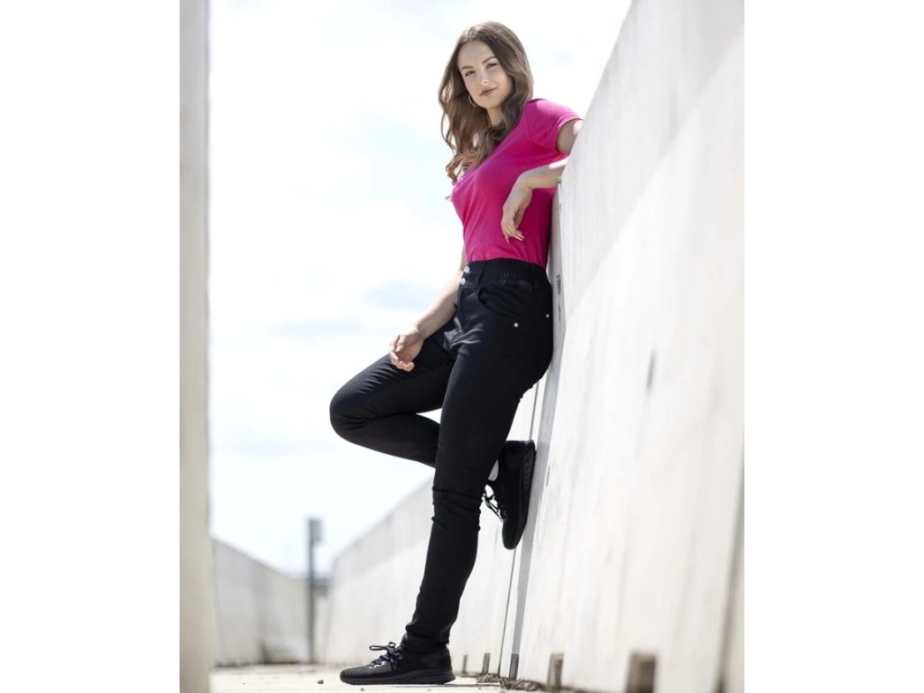 - exkluzivní dámské elastické kalhoty se zvýšeným pasem vyvinuté speciálně pro ženy