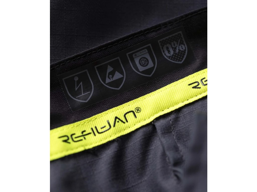 Dámské montérkové kalhoty do pasu certifikované dle norem ČSN EN ISO 13688, ČSN EN ISO 1149-5 a ČSN EN 61340. Optimální gramáž zajišťuje vzdušnost a je ideální volbou pro výrobní provozy i venkovní použití. Speciální vlákno propůjčuje oděvu spolu s antistatickými vlastnostmi vysokou odolnost a pevnost. Funkční linie kapes umístěných do švů eliminuje vrstvení materiálu, design bez viditelných zipů, se skrytým knoflíkem v pase. Kalhoty mají širší opasek s elastickými vsadkami vyvinutý speciálně pro ženy, jsou vybaveny 2 průhmatovými kapsami, 2 kapsami na přední straně nohavic, 2 zadními kapsami. Zadní díl člení sedlo, pružný pasový límec umožňuje přizpůsobení obvodu pasu pro různé typy postav. Propracovaný, anatomicky tvarovaný 3D Silhouette střih COMFORT FIT s předtvarovanými koleny, oblast kolena ze zdvojeného materiálu pro vyšší odolnost. Zvýšenou viditelnost uživatele zajišťují reflexní pásky umístěné na předním i zadním dílu. Kalhoty umožňují snadné prodloužení délky o 5 cm. Oděv je bez kovových částí příslušenství, navržený pro průmyslové praní. Nekovový D kroužek na karabinu.