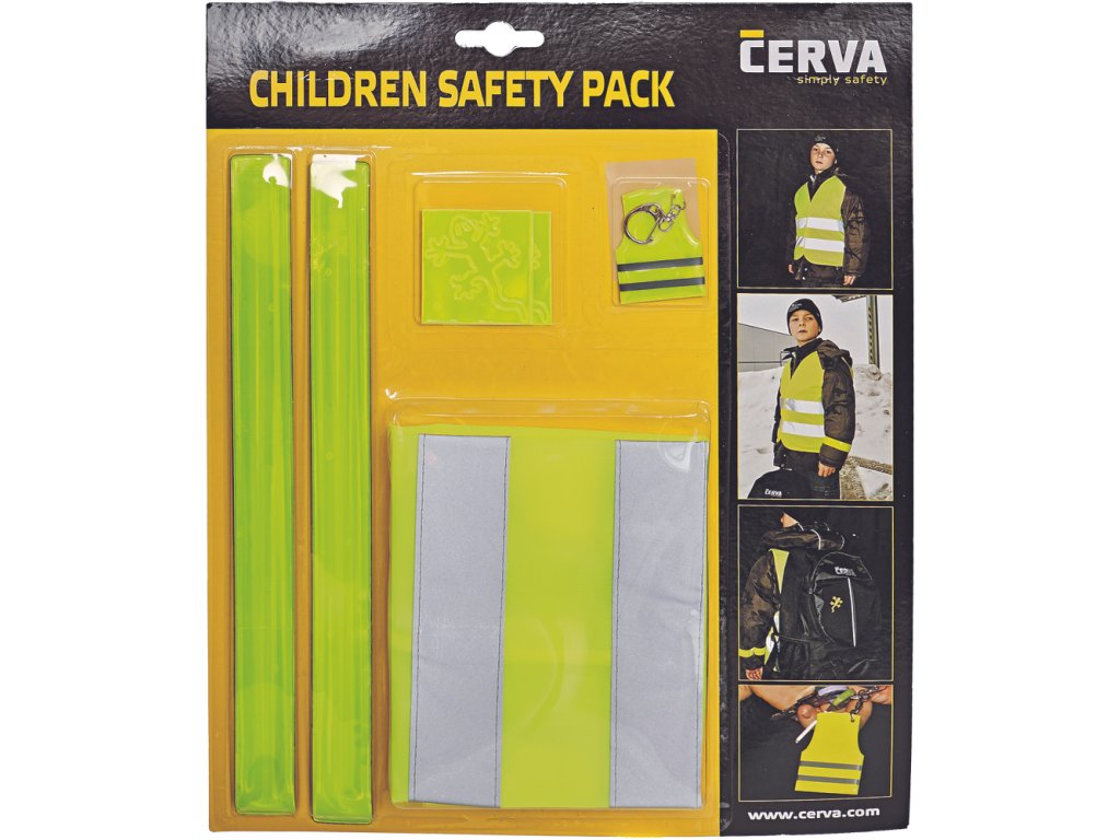 Výstražný reflexní balíček určený dětem. Oděv je určen pro děti starší tří let s výškou postavy 120–140 cm k nošení přes svrchní oblečení pro vizuální signalizaci přítomnosti uživatele za jakýchkoli světelných podmínek ve dne i v noci. Dětská vesta splňuje normu EN 1150 (viditelné oděvy pro neprofesionální použití).