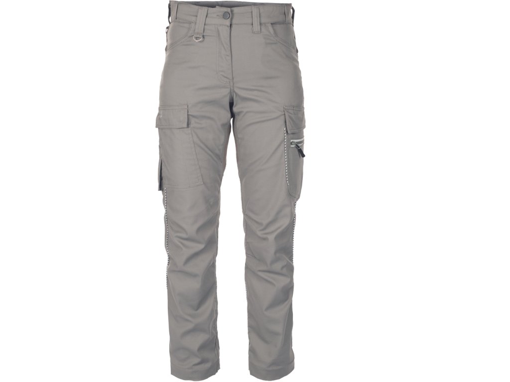 Moderní pánské kalhoty s elastickým pasem, strečové vložení v pase zadního dílu a rozkroku. 2 vkládané boční kapsy, 2 stehenní kapsy s klopou a zapínáním na druky a 2 zadní kapsy. 2 kovové "D" kroužky v pase a reflexní paspulky pro lepší viditelnost.
