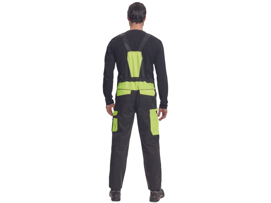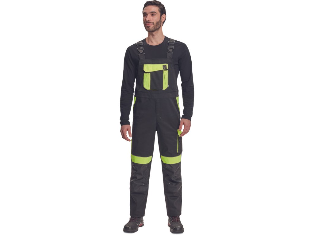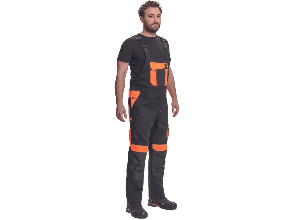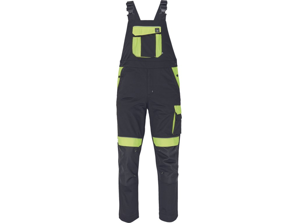 Pánské pracovní kalhoty s laclem a elastickým pasem.