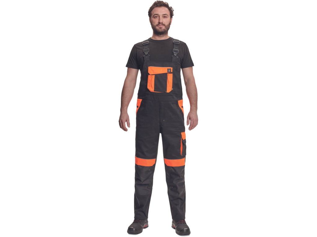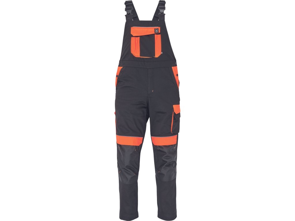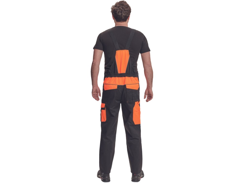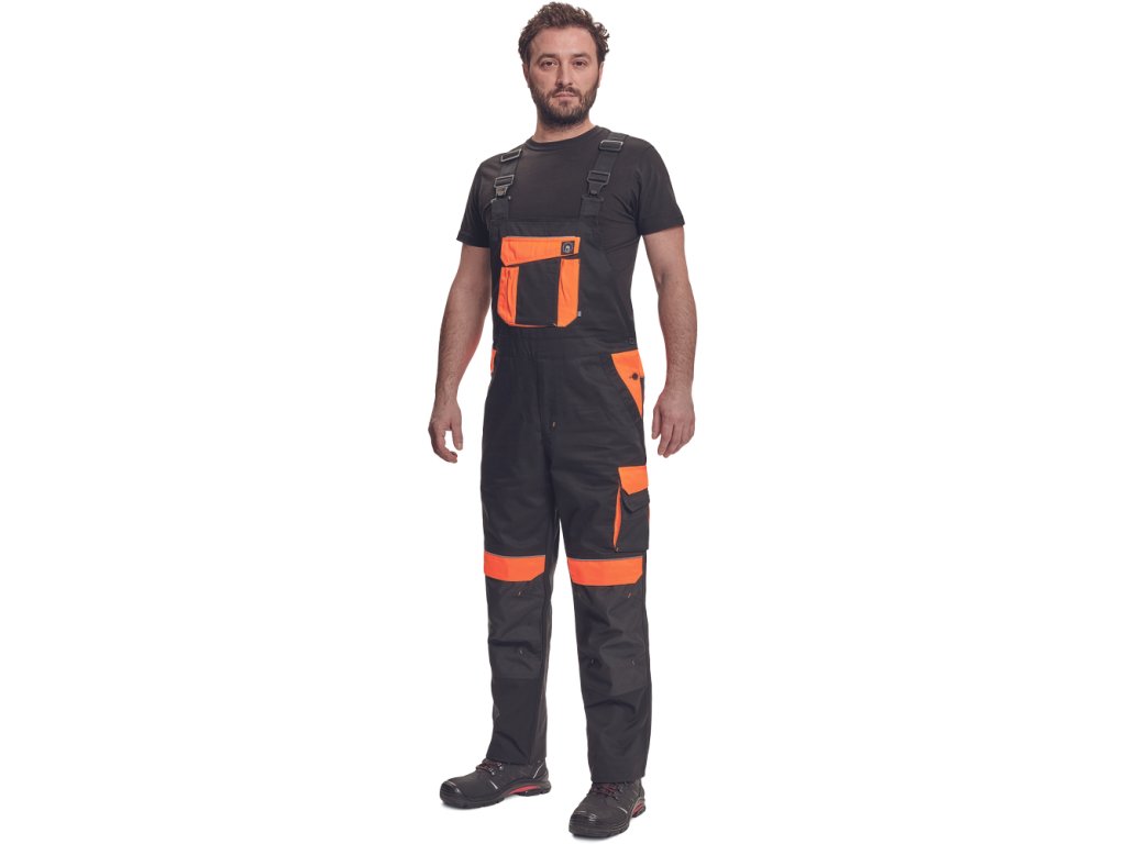 Pánské pracovní kalhoty s laclem a elastickým pasem.