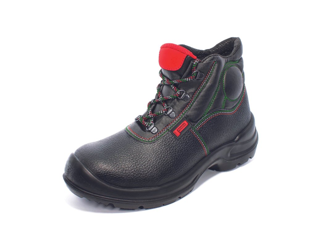 Bezpečnostní kotníková obuv s kovovou tužinkou i stélkou odolnou propíchnutí, antistatickou a protiskluzovou PU / PU podešví odolnou pohonným hmotám, absorpcí energie v patě a svrškem z prodyšné kůže.