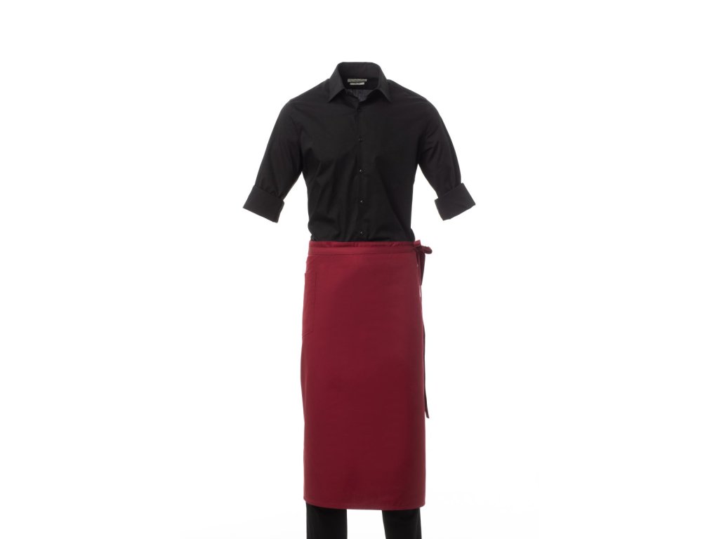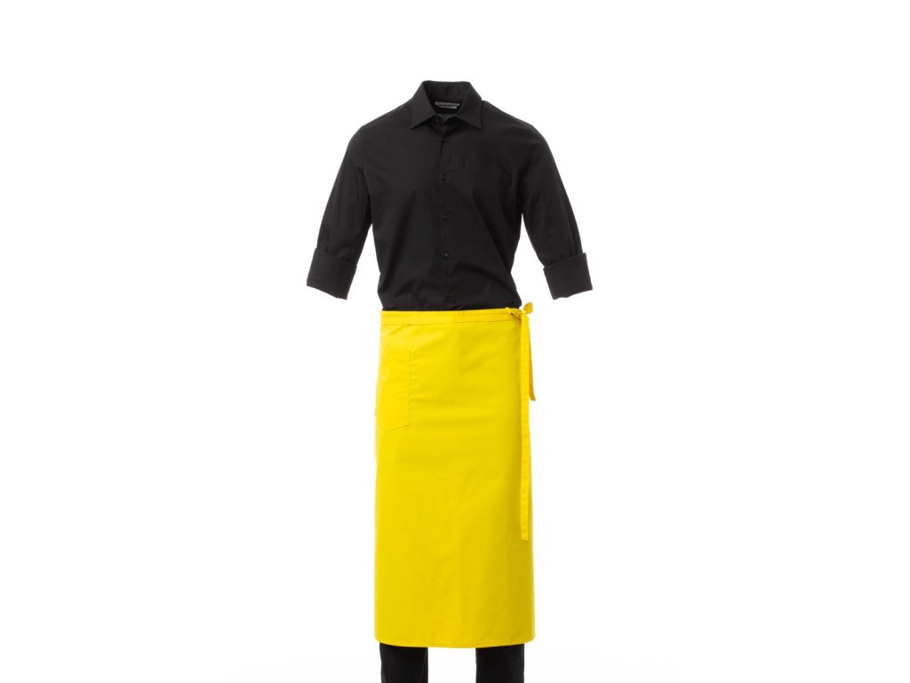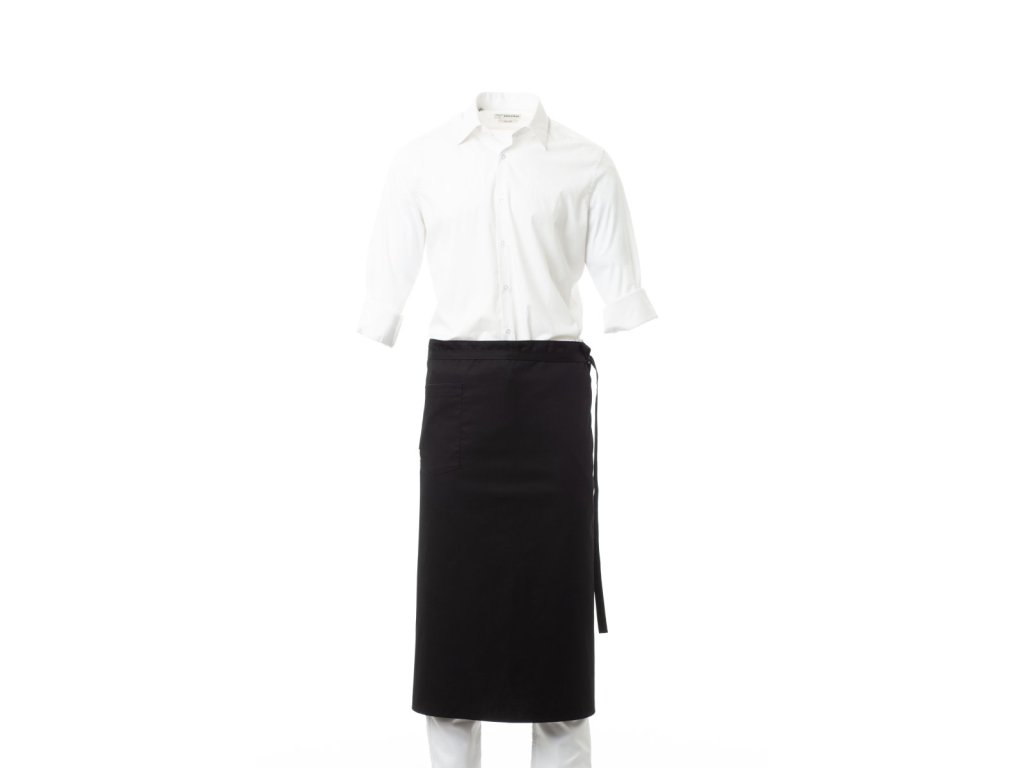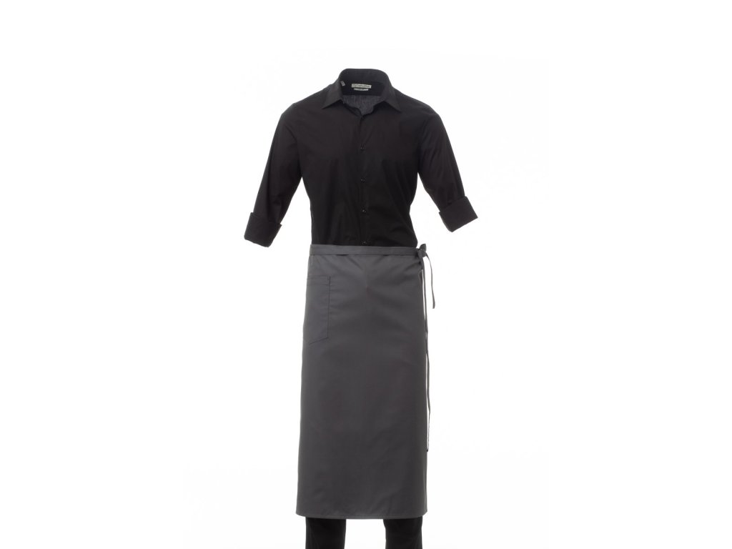Zástěra unisex ve francouzském stylu, multifunkční, z polybavlněné tkaniny. Kapsa mimo střed s integrovaným poutkem na pero.