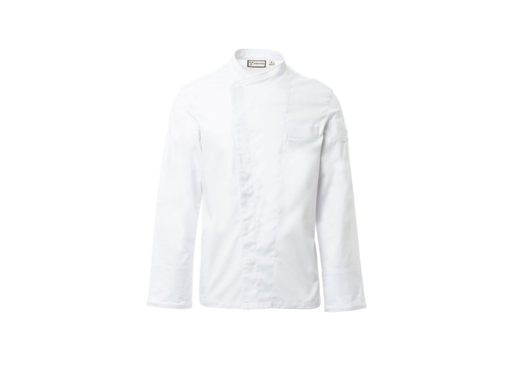 Pánský kuchařský rondon s šálovým límcem, z bavlněného kepru a Lycry ® T400 ®, s vynikajícími elastickými a prodyšnými vlastnostmi. Dvouřadé zapínání na patentky. Dlouhé rukávy se zakulacenou ohrnovací manžetou, luneta z pohodlné síťoviny v podpaží pro zvýšení prodyšnosti. Ikonická tvarovaná nášivka na levém rameni, s výšivkou vrtule tón v tónu, doplněná kapsičkou na pero. Kapsička na hrudi a praktická kapsa na smartphone v pase. Sladěné lemování na krku, spodní části rukávu a kapsičce na hrudi. Svislé rozparky v dolní části zad pro usnadnění pohybu.