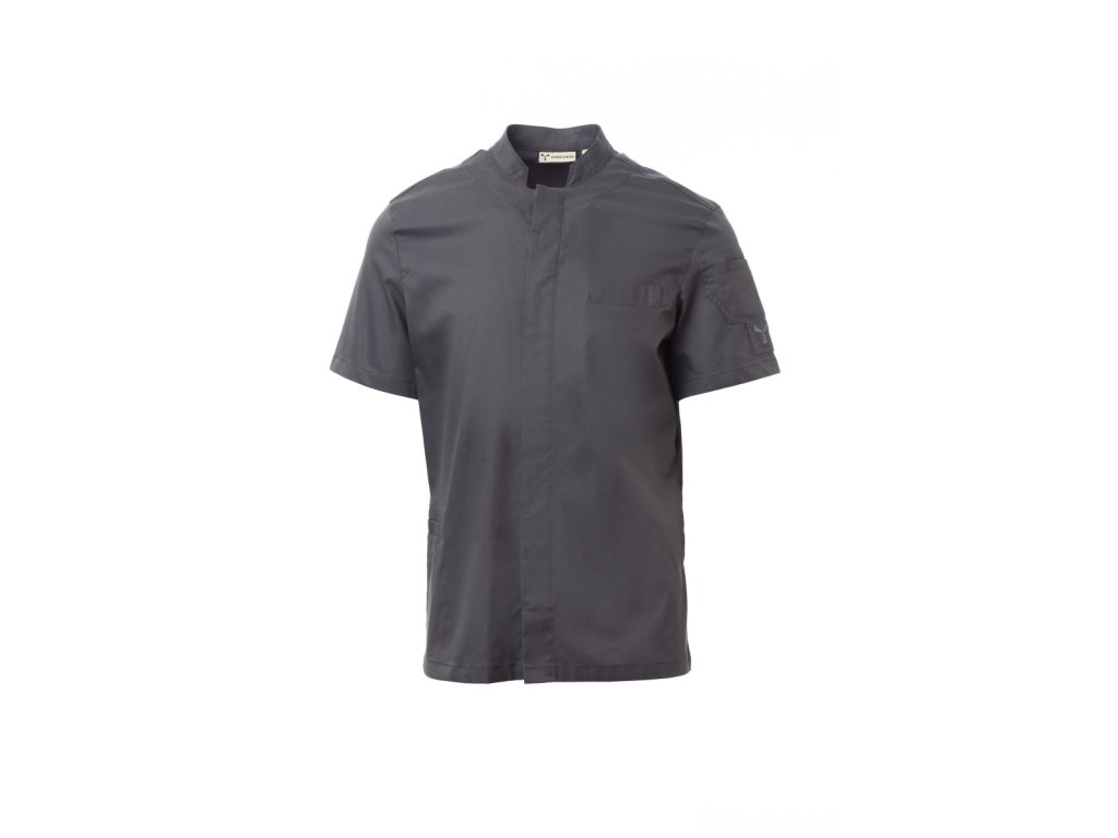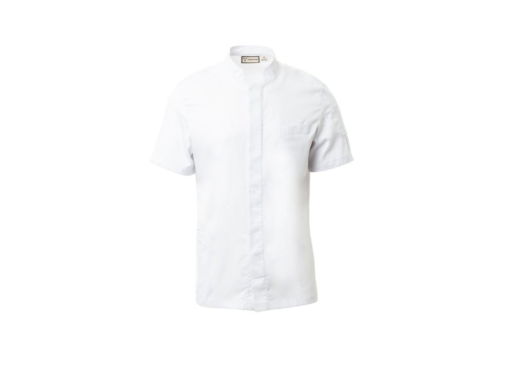 Pánský kuchařský rondon se stojáčkem, z bavlněného kepru a Lycry ® T400 ®, s vynikajícími elastickými a prodyšnými vlastnostmi. Zapínání na patentky uprostřed. Krátké rukávy s lemem, luneta ze síťoviny v podpaží pro zvýšení prodyšnosti. Ikonická tvarovaná nášivka na levém rameni, s výšivkou vrtule tón v tónu, doplněná kapsičkou na pero. Kapsička na hrudi a praktická kapsa na smartphone v pase. Svislé rozparky v dolní části zad pro usnadnění pohybu.
