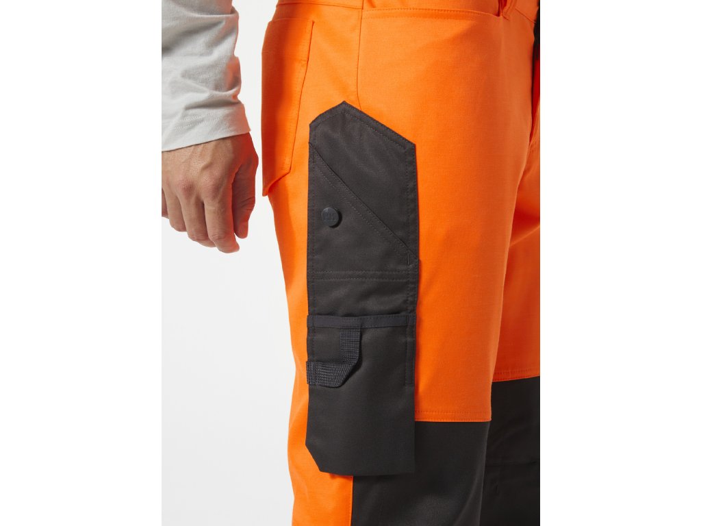 Pracovní kalhoty pro vysoké zatížení se v pracovních kalhotách Helly Hansen Workwear UC-ME WORK PANT CLASS 2 setkávají s high-tech tkaninou a designem. Pohybujte se pohodlně během dne v obousměrné mechanicky strečové tkanině s kloubovými koleny. Klín v rozkroku zvyšuje pohyblivost a stabilitu oděvu. Profesionální detaily – jako jsou kovové knoflíky potažené plastem a stehenní kapsy se zapínáním na zip – zvyšují odolnost. Přizpůsobte si střih nastavením chráničů kolen nebo délky nohou. Kapsy na podkolenky jsou přístupné na vnitřní straně nohavic. Zkušené doteky, jako je kapsa na pravítko a poutko na průkaz, zvyšují pohodlí vašeho dne. Zůstaňte v bezpečí díky vysoce viditelné tkanině a širokým reflexním pruhům na spodní části nohavic.